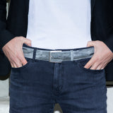 Our classic Downtown Denim belt includes a thick patterned leather strap, that can be paired with any style denim. The grain of the leather feels delicate, and also allows it to be ideal for every day wear as a comfortable accessory.