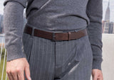 Elevate your classic sartorial style with the Bicoastal belt. Designed with the highest quality Saffiano leather, featuring the iconic cross hatch print at just the tip.